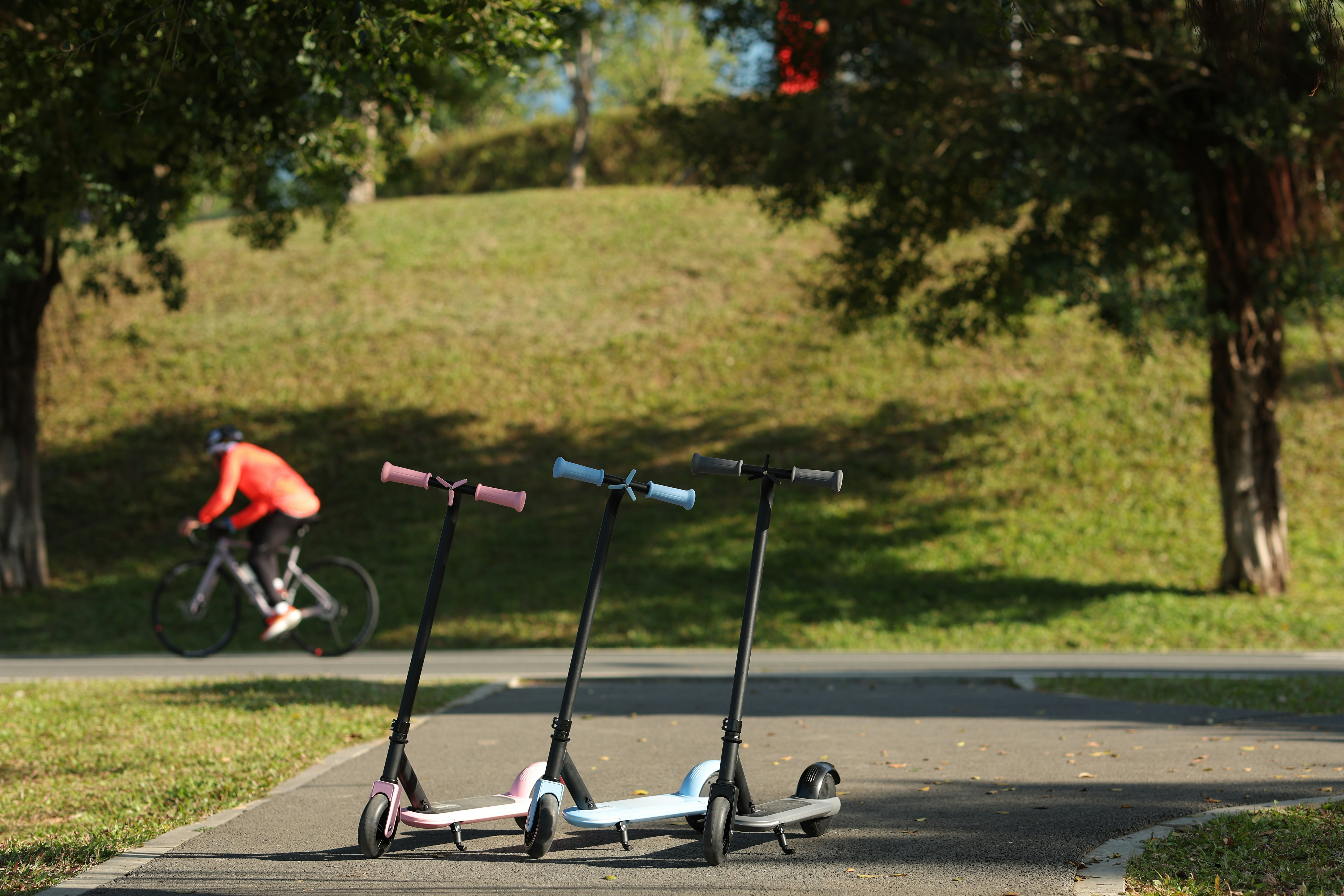 De pie, sujeta una banda de resistencia ligera con ambas manos, los brazos extendidos frente a ti a la altura del pecho.