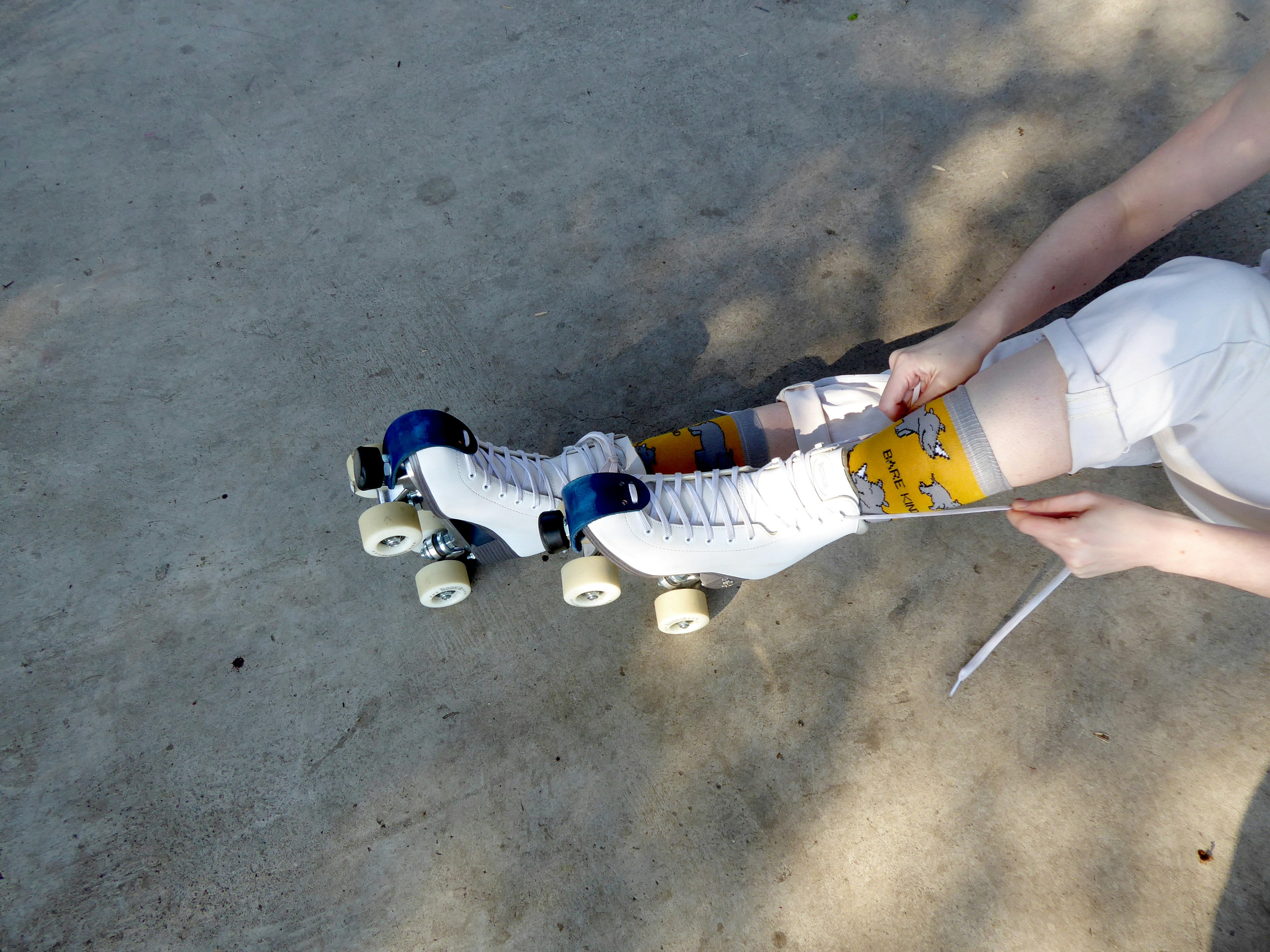 Agarra las asas del trineo con los brazos extendidos y el cuerpo inclinado hacia adelante.