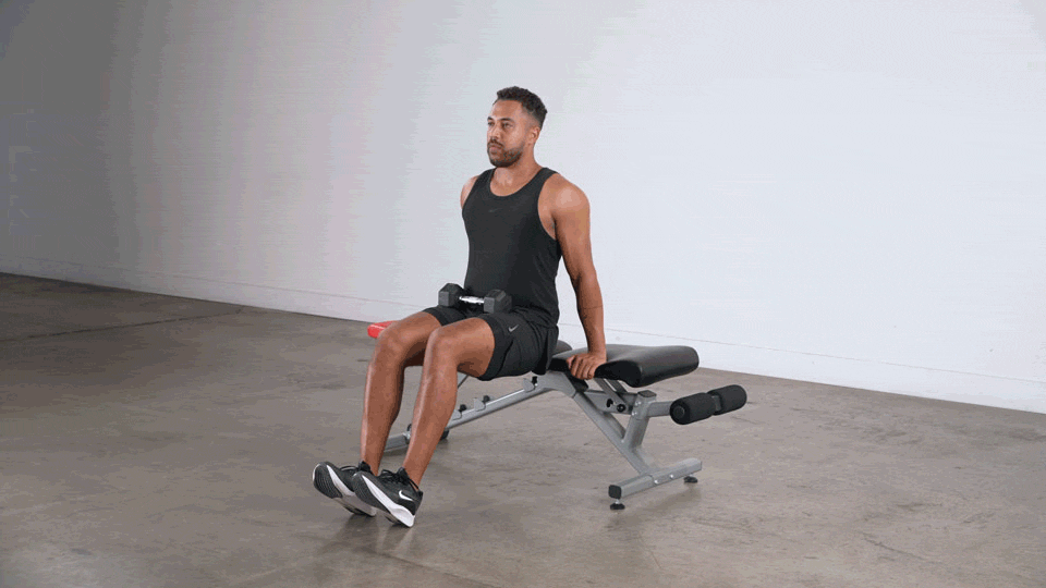 Coloca las manos en el borde del banco detrás de ti, con los dedos apuntando hacia adelante.
