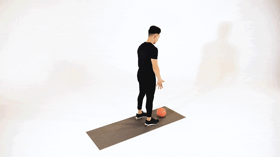 Con un movimiento explosivo, extiende las caderas, rodillas y tobillos (triple extensión) y lanza el balón medicinal por encima de tu cabeza y hacia atrás lo más lejos posible.