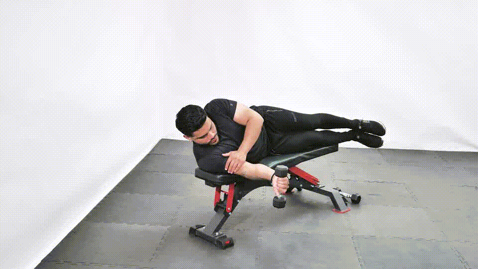 Rotación interna de hombro con mancuerna acostado de lado