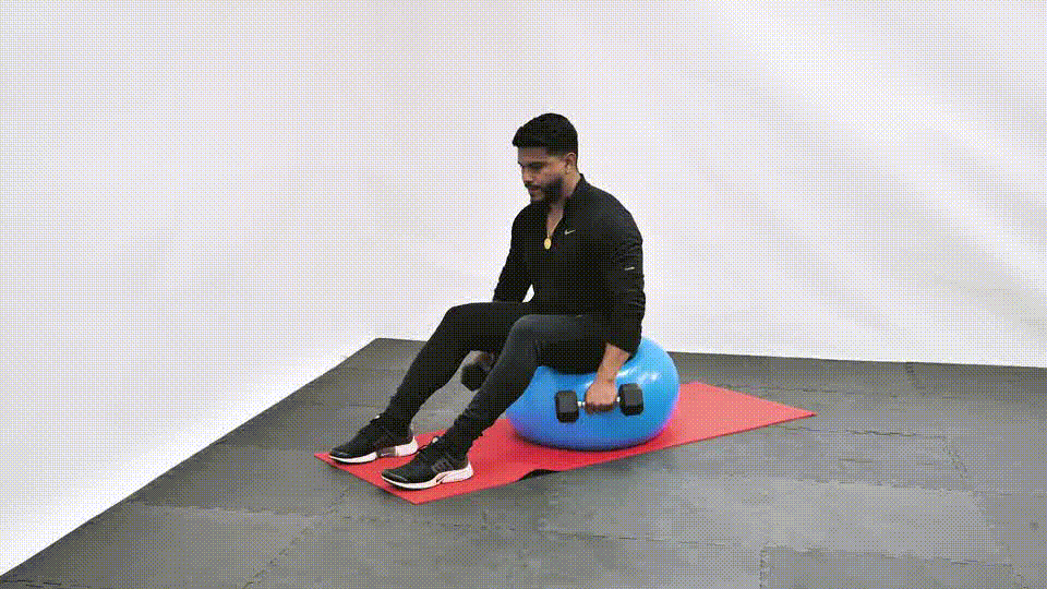 Elevación Lateral con Mancuernas en Balón de Estabilidad