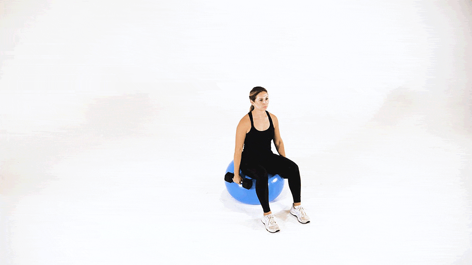 Elevación Lateral Alterna con Mancuernas sobre Balón de Estabilidad