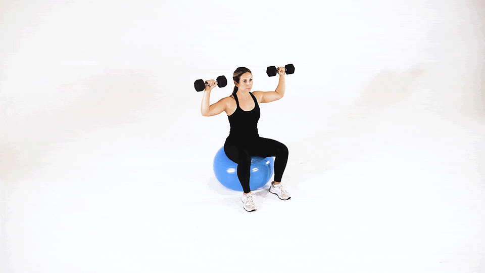 Press de Hombros con Mancuernas en Balón de Estabilidad