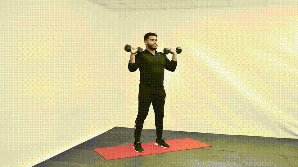 Sentadilla con mancuernas a Press de hombros