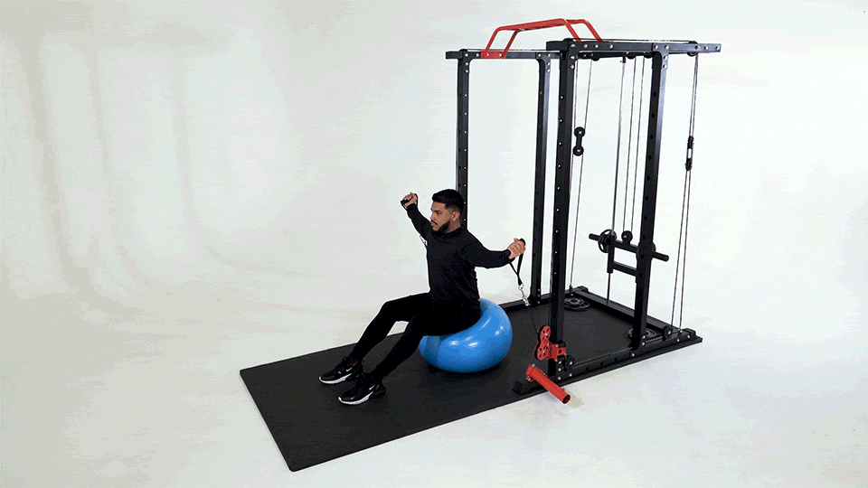 Curl Bíceps Doble Cables Sobre Cabeza con Balón de Estabilidad