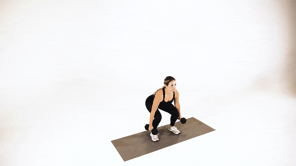 Sentadilla con Salto y Rotación con Mancuerna