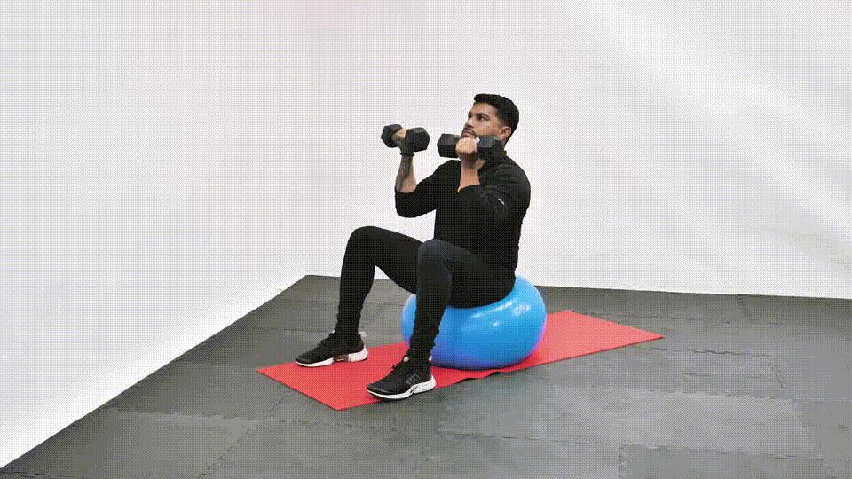 Press Arnold Alterno con Mancuernas en Balón de Estabilidad