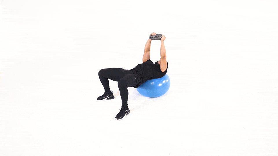 Pull-over con disco sobre balón de estabilidad
