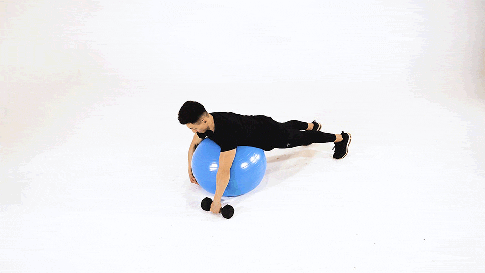 Remo a una Mano con Mancuerna en Balón Suizo