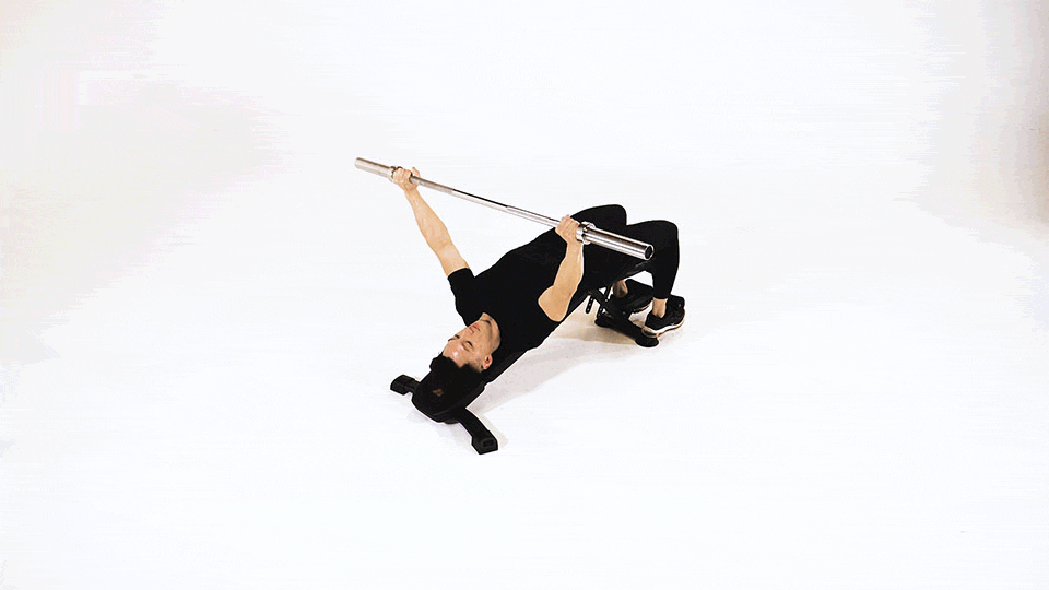 Press de Banca Declinado con Barra y Agarre Ancho