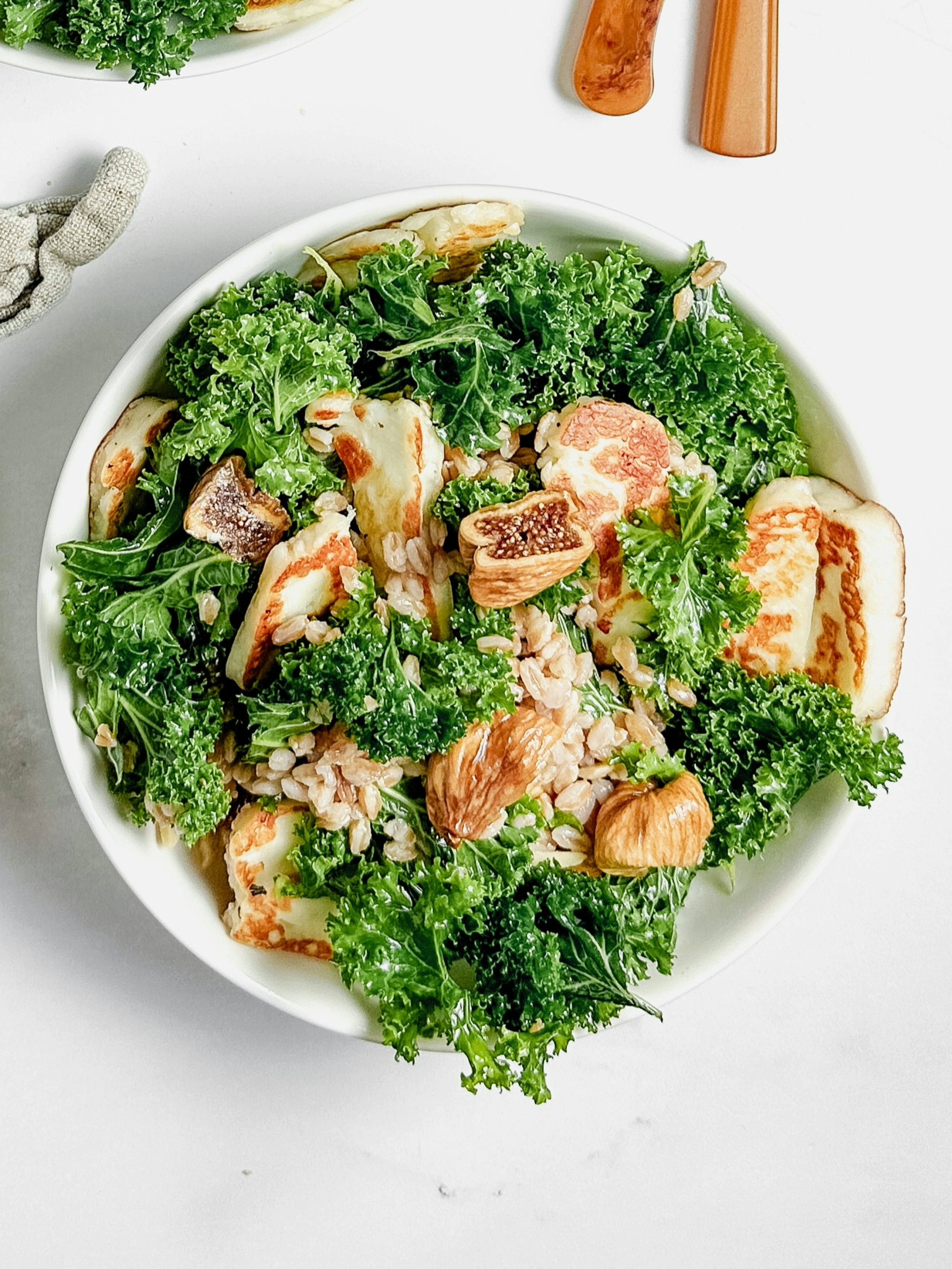 Un vibrante y nutritivo bowl de inspiración mediterránea, perfecto para una cena fitness repleta de sabor y color. La quinoa, una proteína completa, se combina con una variedad de verduras frescas como pepino, tomate, aceitunas y espinacas, aportando una gran cantidad de fibra y vitaminas. El halloumi a la plancha añade una textura crujiente y un toque salado irresistible, convirtiendo este plato en una opción deliciosa y saciante que es ideal para mantener una dieta equilibrada y un estilo de vida activo. Fácil de preparar y lleno de bondades.