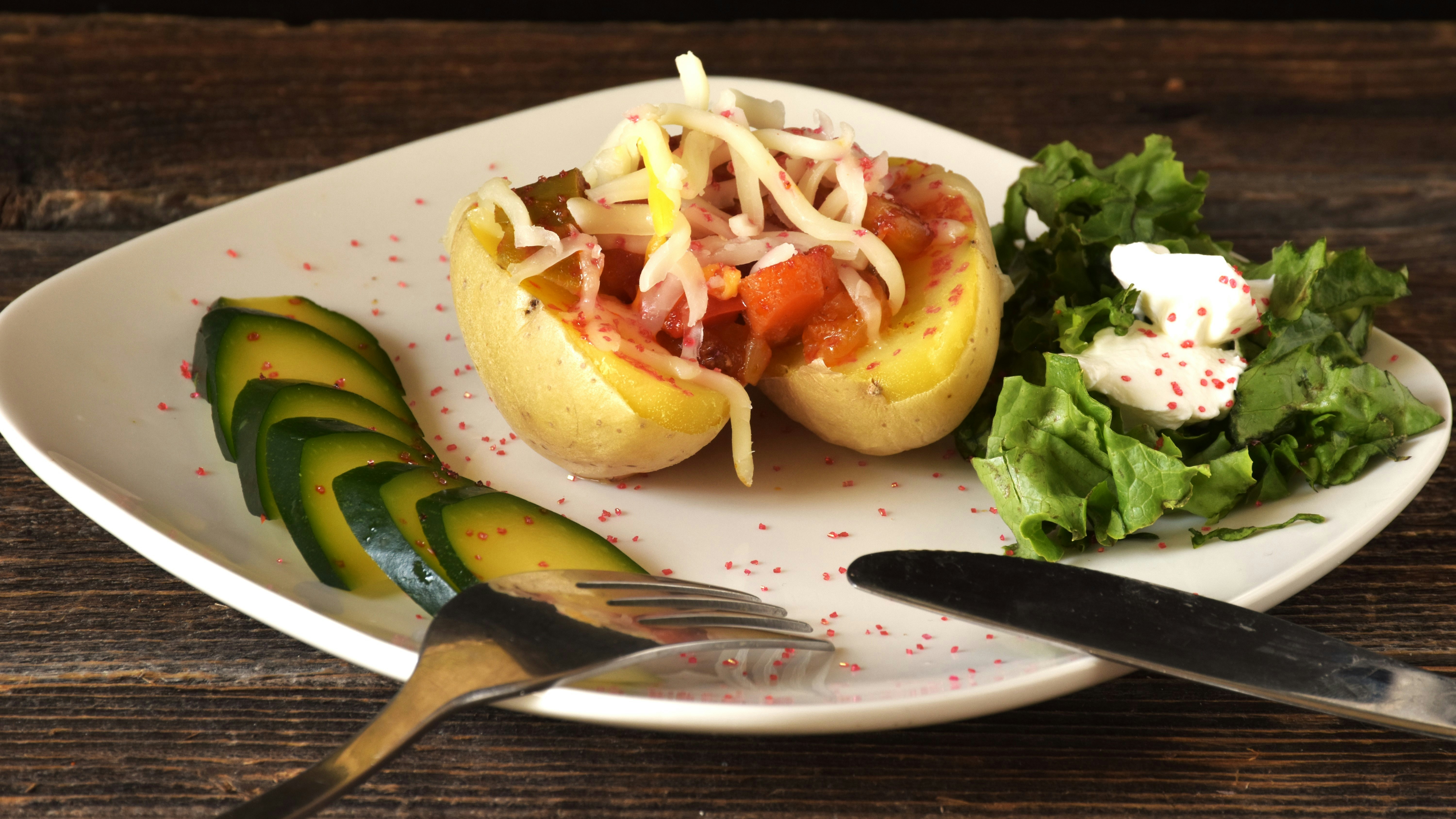 Una vez que el boniato y el pollo estén listos, ensamblar el bowl. Colocar el boniato asado en la base, seguido del pollo cocinado.