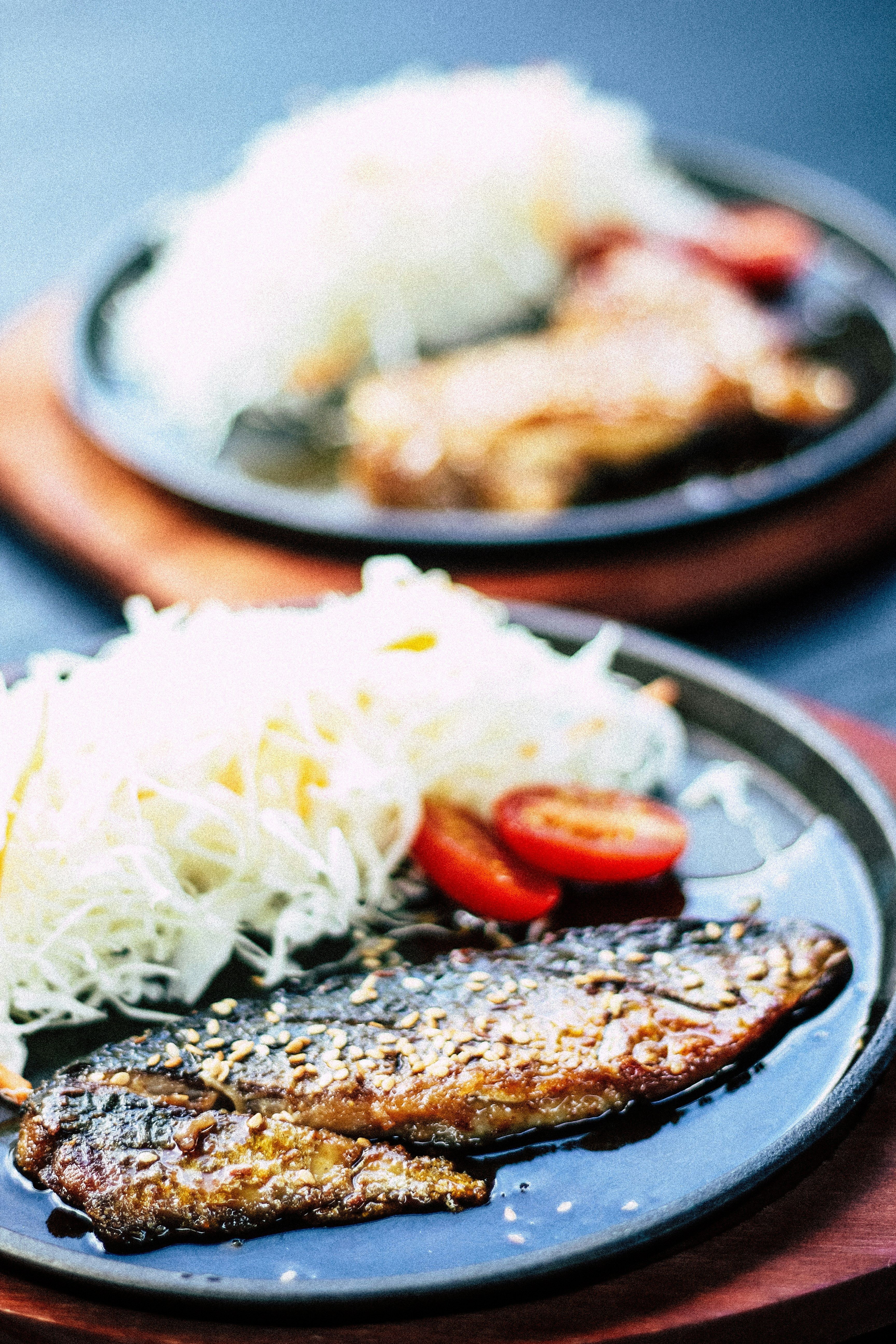 Sirve el pescado a la plancha con el arroz integral jazmín y las verduras al vapor. Decora con perejil fresco picado y un gajo de limón.
