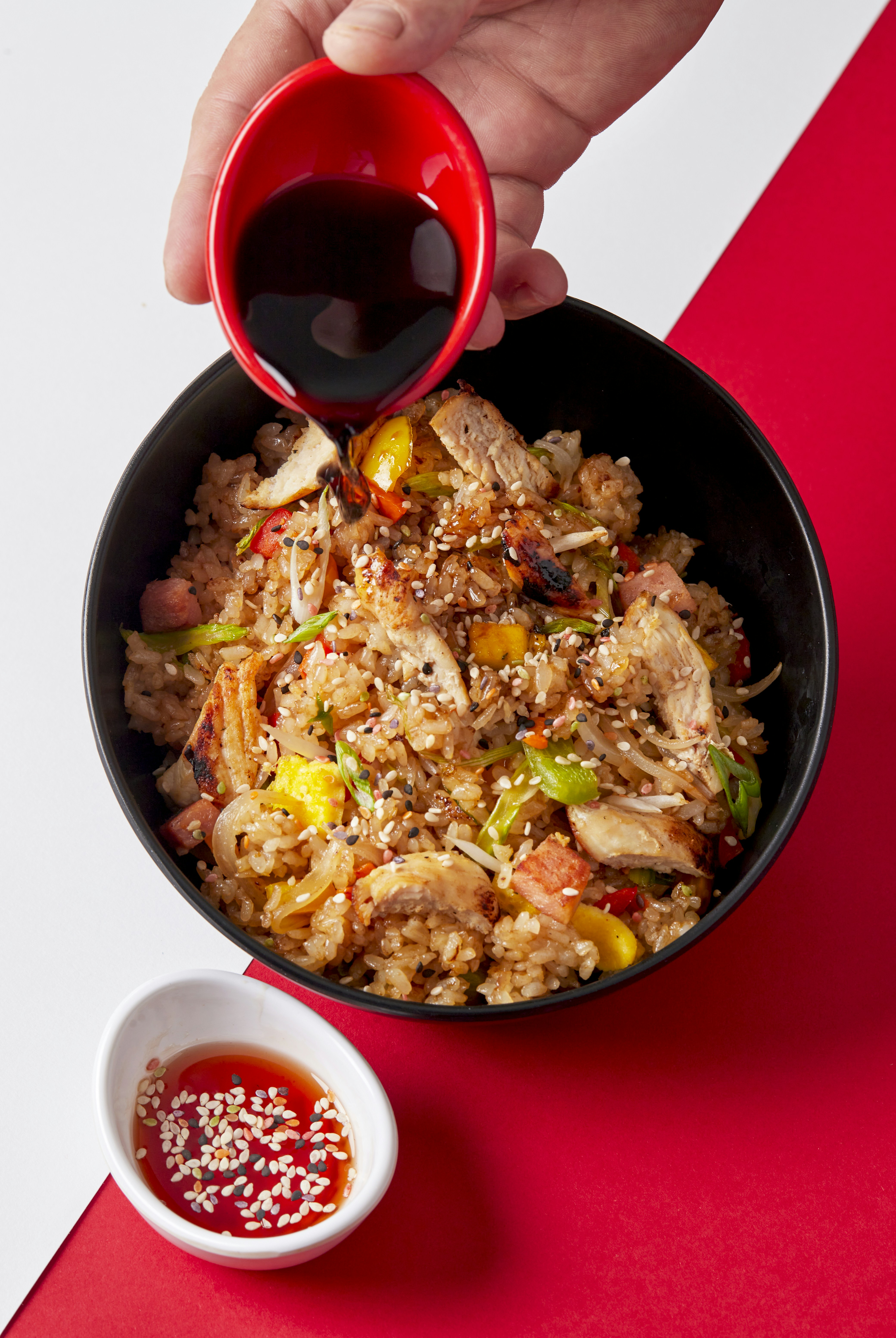 Vuelve a incorporar el pavo a la sartén. Añade la salsa de soja y mezcla bien para que todos los ingredientes se impregnen del sabor.