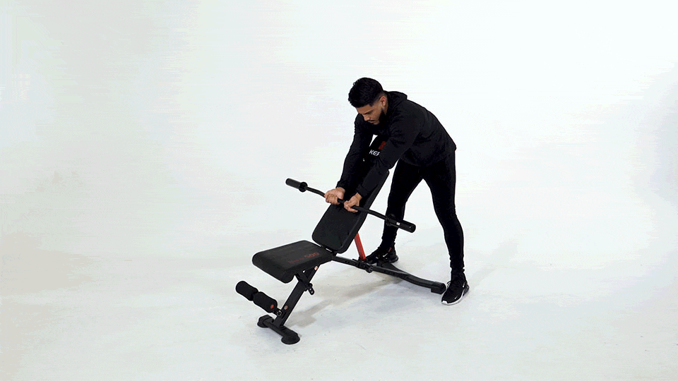Mantén los codos pegados al cuerpo y arrastra la barra hacia arriba por el torso, contrayendo fuertemente los bíceps.